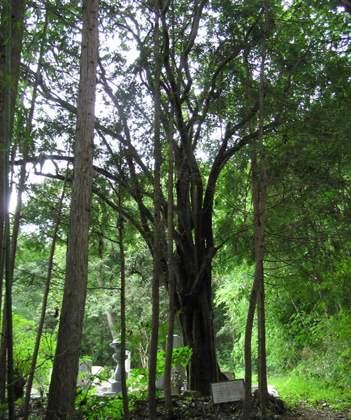 本カリンは、中国原産の落葉高木で、樹高13m、目通り周囲2.1m、根元周囲2mである。高さ1.7mのところで枝が分かれ、枝数は13本である。また長さ10cm内外の楕円形の実がなる。
