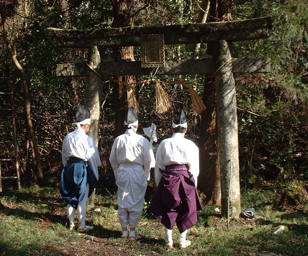 元弘2年(1332)、後醍醐天皇(ごだいごてんのう)(在位1318−1339)が隠岐(おき)へ流される途中に唐松(からまつ)の国司神社で休息した。このとき、地区の男性は天皇を警備するため神社に集まり、女性・子どもは戸を閉めて家にこもり火気を止めて慎んだと言われる。これを聞いた天皇は大変喜び、この神社に対して甲冑(かっちゅう)と矢1本を奉納し、また田を置いて位を下賜(かし)した。そのため、この地を「位田」(くらいだ)と呼び、この祭を「皆籠祭」と呼ぶようになったと伝えられる。祭は旧暦正月亥の日(2回あれば初めの日、3回あれば中の日)に行う。祭の当日は、岩山神社(いわやまじんじゃ)での神事のあと、社人(しゃにん)2人と供人(ともびと)1人で神社を出発し、田津川で身を清め、白装束(しろしょうぞく)・わらじ掛けに着替えて奥宮(弥山)をめざす。鳥居に差し掛かったところでそばに祀(まつ)る国司宮(くにしぐう)の小社で白餅・粟餅・榊(さかき)・弓の矢柄(やがら)等を供えて祀り、祝詞(のりと)をあげる。ここから上には社人・供人以外には上がることができない。続いて、中御崎の国司宮で麹(こうじ)・長刀等を供えて祝詞を奏上する。奥宮では、供人が携えた麹・御幣(ごへい)・お山銭等を供えて祀り、その後サイコロで各地区の吉兆を占う。