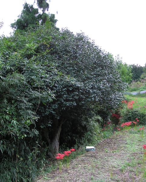 本ツバキは、樹高約7.5m、目通り周囲約1.6m、高さ約1.6mのところで3本に枝分かれしている。樹齢250年と推定されている。